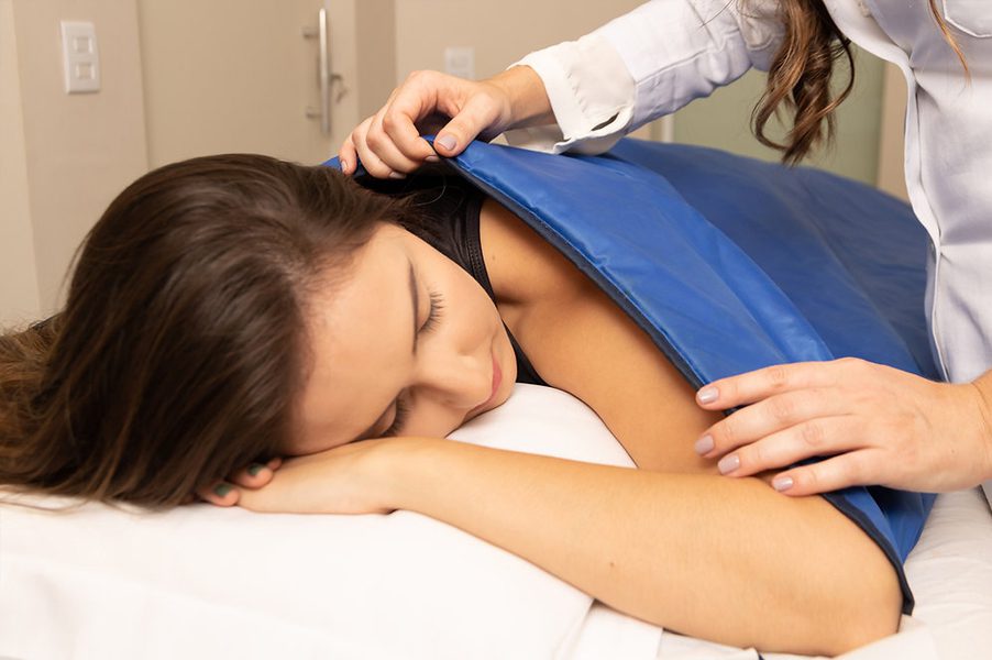 A termoterapia é uma técnica que utiliza o calor para proporcionar diversos benefícios para o corpo, estimula a circulação sanguínea e promove a regeneração celular, também auxilia na eliminação de toxinas e na redução de medidas. Os benefícios da termoterapia são justamente graças ao aumento de temperatura, provocado pela manta térmica, que incluem: relaxamento, vasodilatação cutânea, aumento do fluxo sanguíneo superficial, melhora na permeabilização cutânea dos ativos, estimula a renovação celular da pele, ação anti-inflamatória e combate a retenção de líquidos.